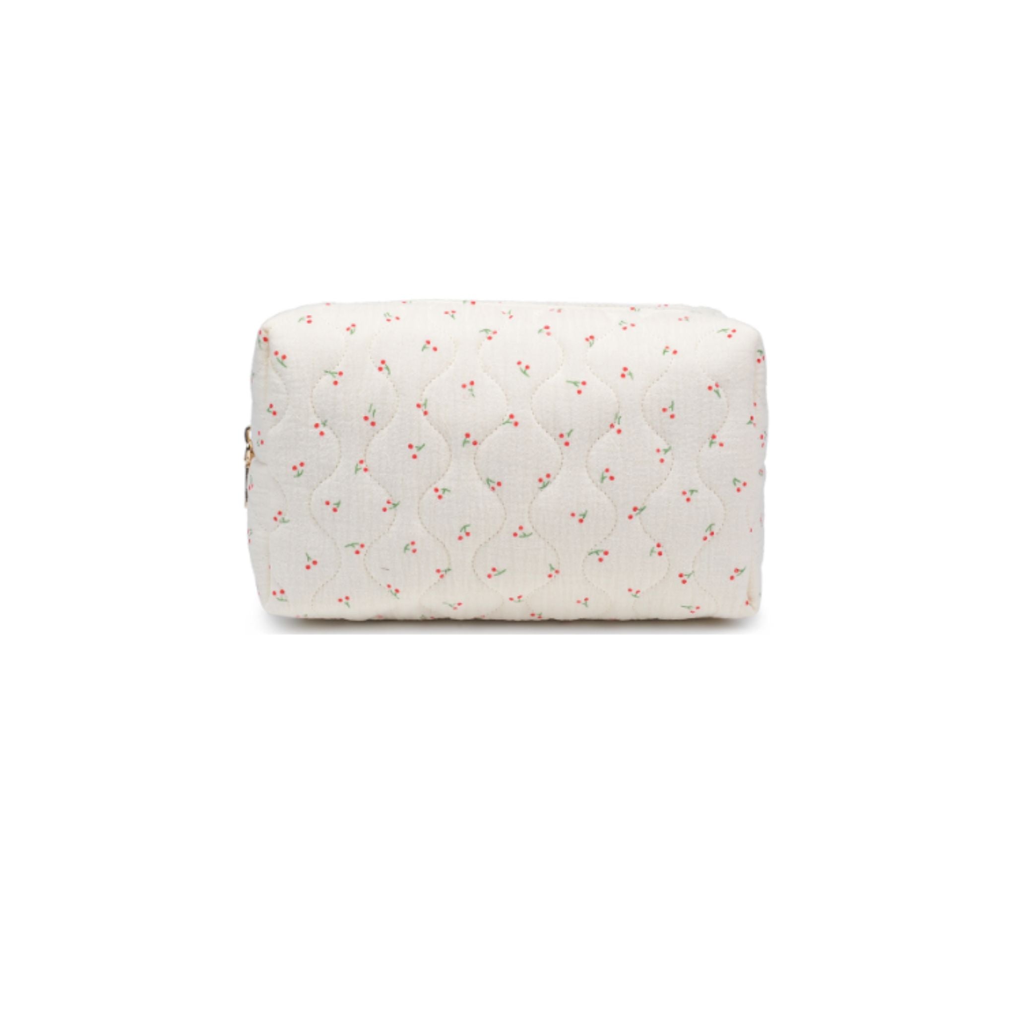 Cherry print quilted makeup-bag.
